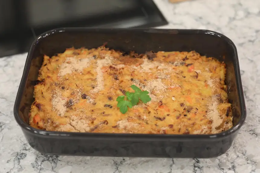 Envolva o molho bechamel com a mistura reservada e disponha o preparado num pirex. Embeba o pão em leite. Monte em refratário, cubra com o restante da cenoura, parmesão. ½ pacote de pão de fôrma sem casca. Coloque o purê em uma forma refratária e cubra com o restante do molho branco.